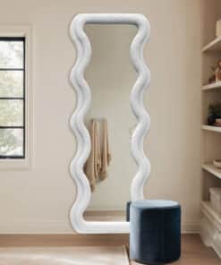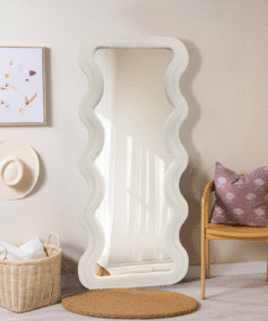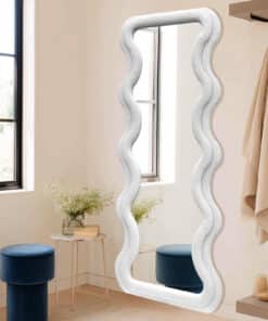 The mirror features a 4mm high-definition silver mirror that ensures bright, distortion-free reflections, supported by a sturdy 3mm MDF backboard for extra durability. Whether you’re elevating a bedroom, brightening an entryway, or styling a chic living area, this wavy white velvet mirror makes a sophisticated statement.