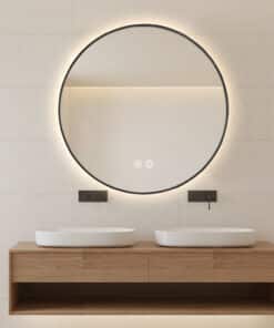 The BestWorld Round LED Mirror with a black bevel frame and backlit design seamlessly combines elegance with advanced lighting technology. Its sophisticated bevelled edge and halo lighting create a captivating visual effect, ideal for modern and luxurious spaces. Crafted with a 5mm copper-free, environmentally friendly silver mirror, this piece not only offers crisp reflections but also supports sustainable choices. With multiple size options, it’s a perfect fit for bathrooms, dressing areas, or any space needing a stylish, functional upgrade.
